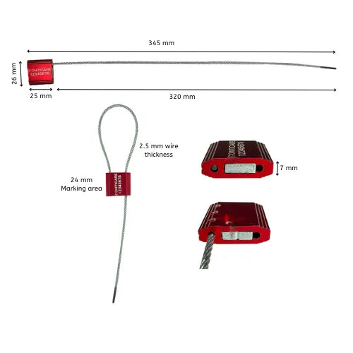 Customised Seals: Laser Engraved – Serial No, Barcode, Mark. up to 7 characters Companies can use customised laser branding to incorporate their logos, names, or other branding elements onto cable seals. This reinforces the seal’s authenticity and origin. It also provides an added layer of security against counterfeiting and tampering. Any attempt to alter or remove the markings is likely to be evident.